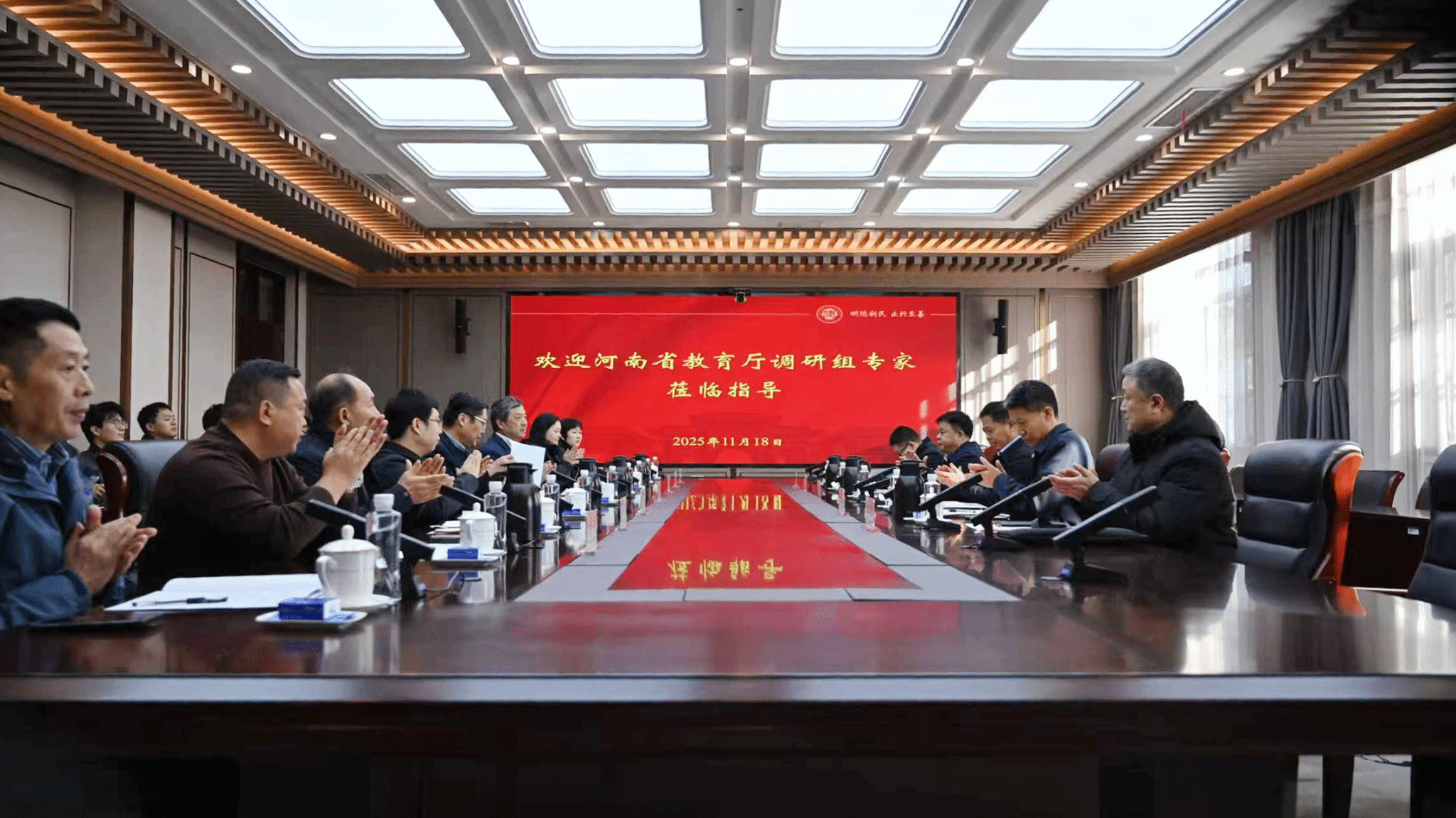 11月18日,河南省教育厅国防教育调研专家组一行5人,在组长郑州航空工业管理学院党委副书记李广锋的带领下,莅临我校开展国防教育工作开展情况调研指导。河南大学校党委副书记杨萌芽、人民武装部、军事理论教研部、人才人事部、教务处、人文社科研究院等单位相关负责人、军事课教师代表和学生代表参加了会议。