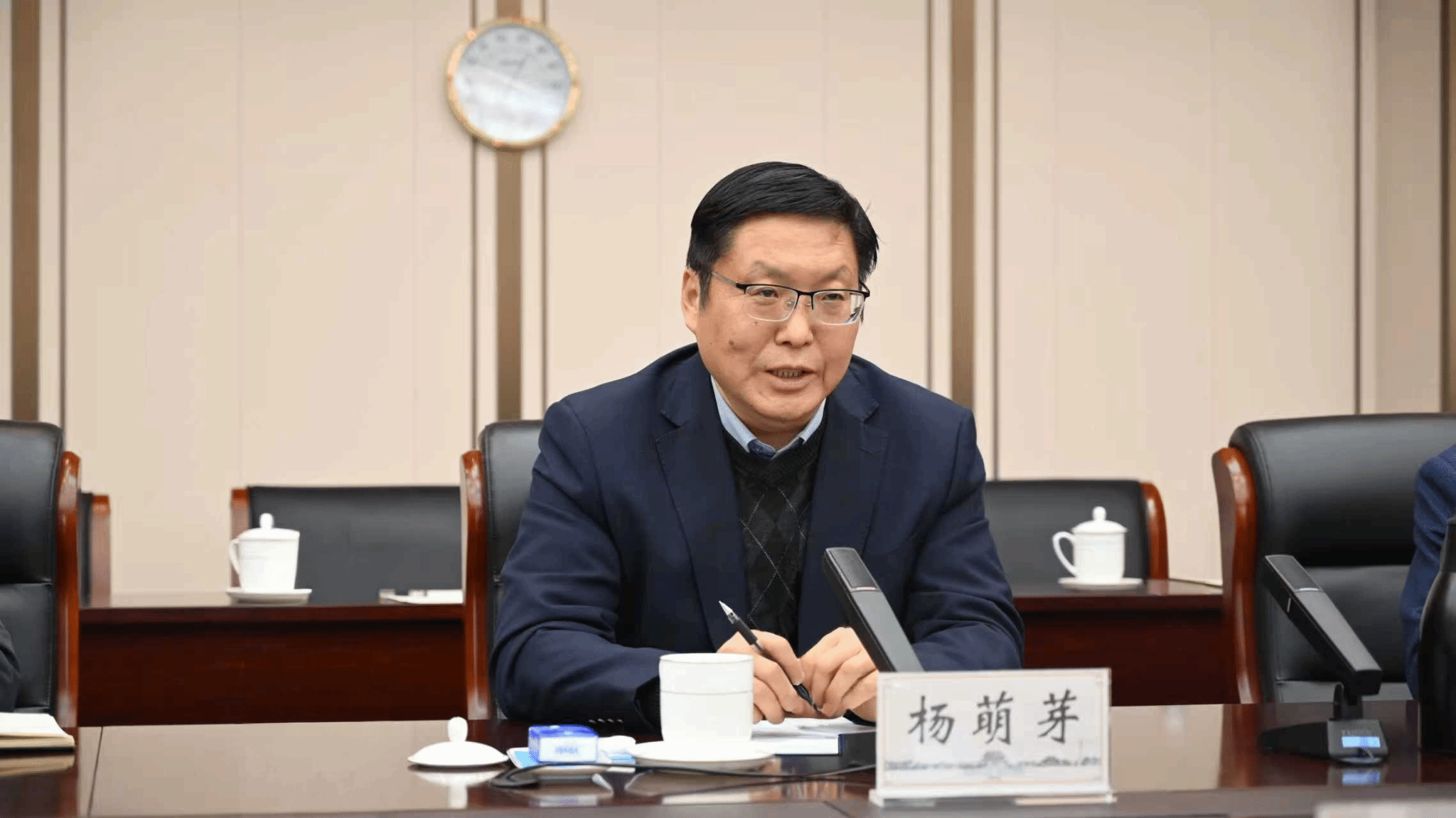 杨萌芽致欢迎辞并对专家组莅临我校指导工作表示欢迎。他介绍了我校国防教育工作开展情况,总结了学校国防教育工作取得的成绩和不足,希望以此为契机,推动河南大学国防教育工作迈出新的发展步伐。