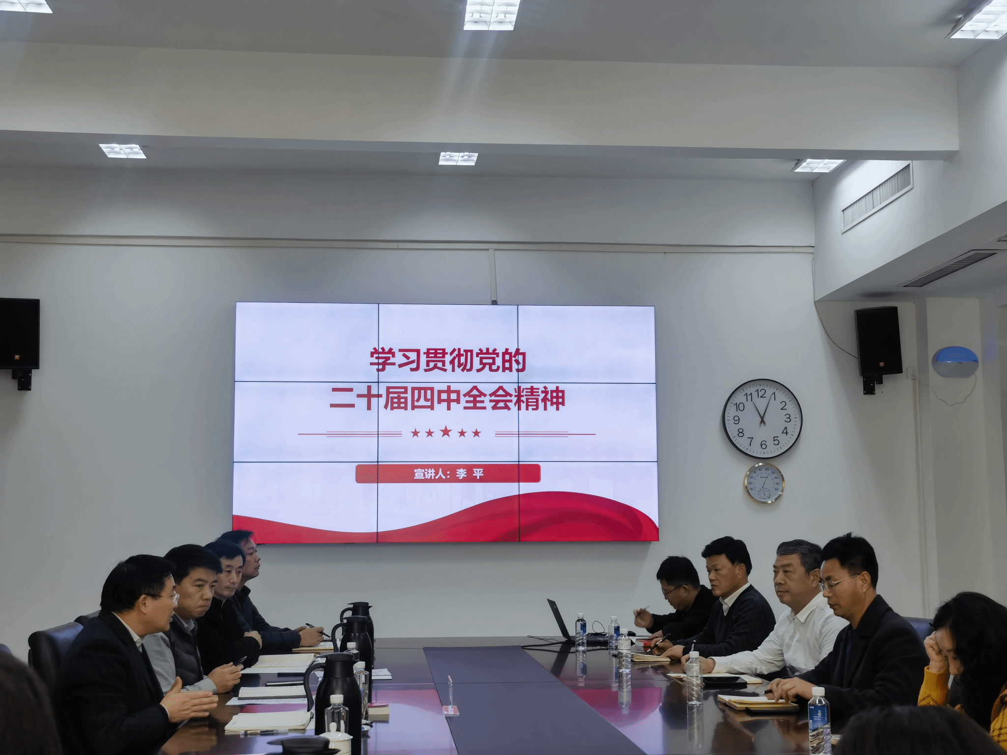 为进一步学习贯彻党的二十届四中全会精神,深入贯彻落实习近平总书记在全会上的重要讲话精神,12月15日上午,校党委副书记李平在龙子湖校区友兰中楼301会议室为校党委组织部、党委统战部全体成员,党委保卫部、离退休党委班子成员作专题宣讲。